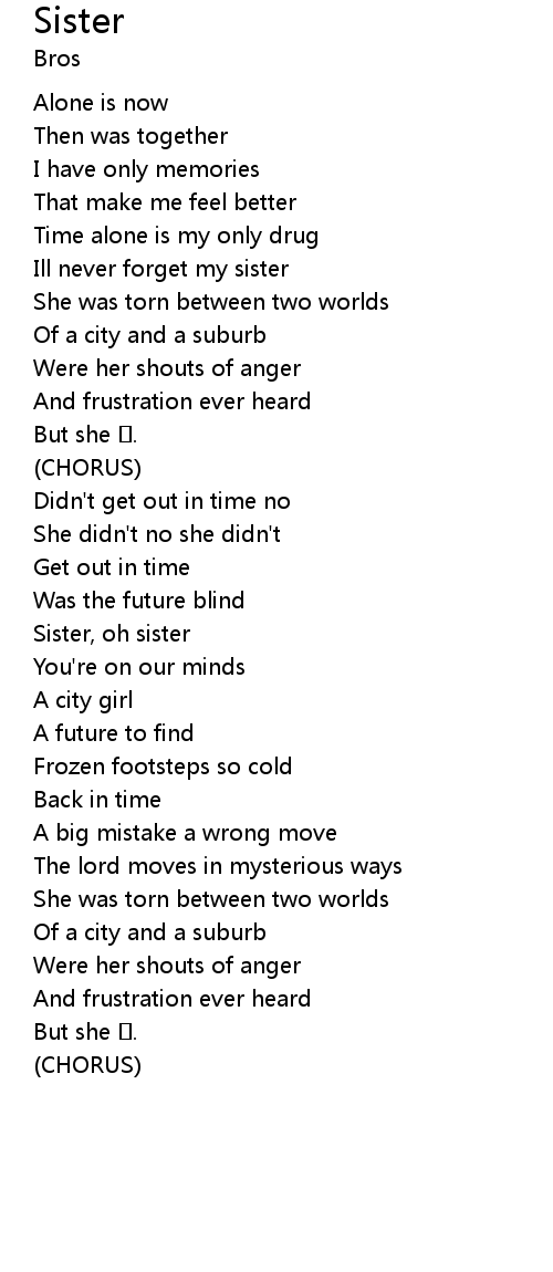 | Sister, oh sister | |
