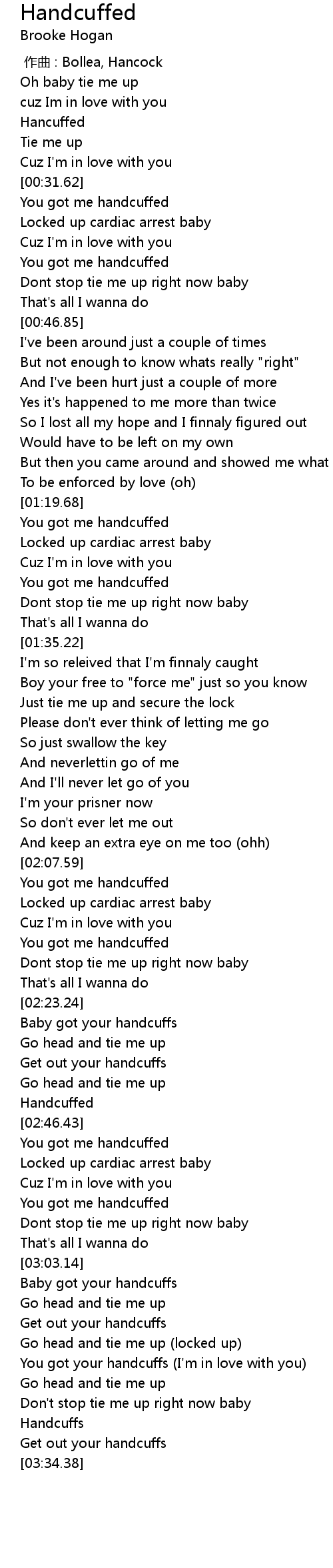 | [00:31.87] | You got me handcuffed |