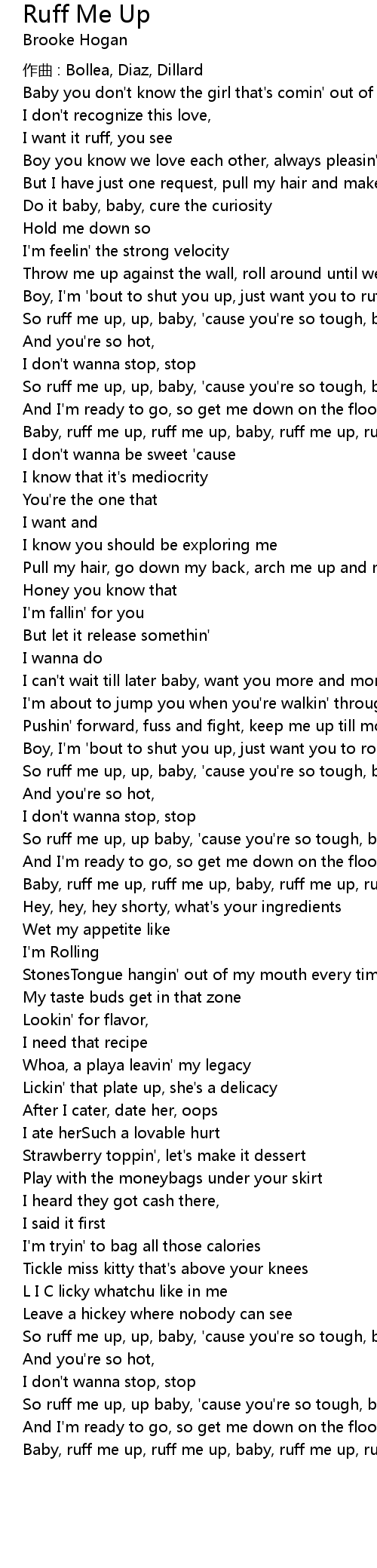 | Baby, ruff me up, ruff me up, baby, ruff me up, ruff me up | |