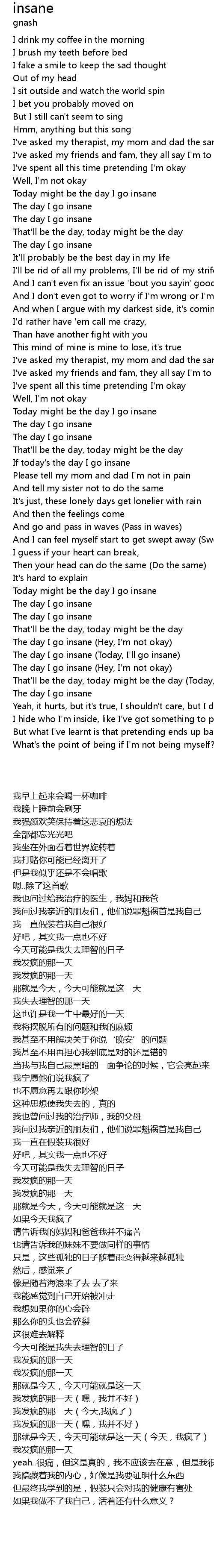 | [03:36.98] | The day I go insane (Hey, I'm not okay) |