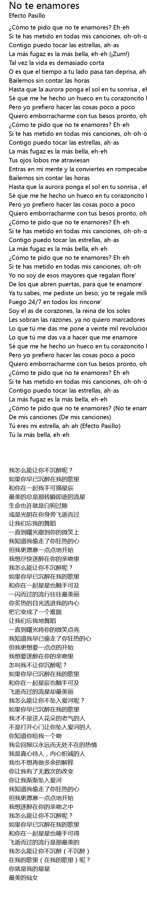| [03:14.40] | Có mo te pido que no te enamores? No te enamores |