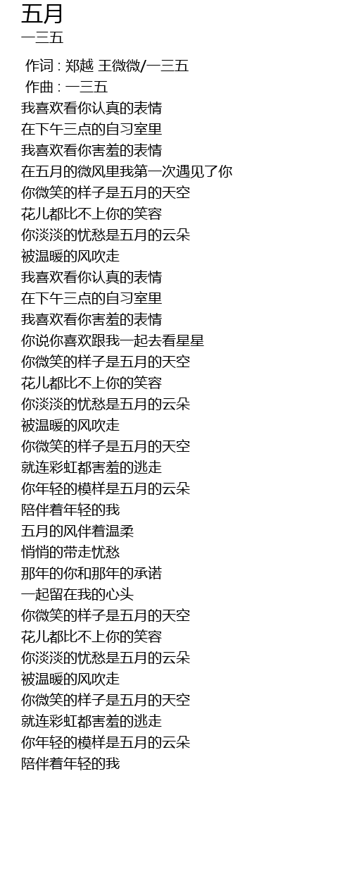 | [03:30.917] | 你微笑的样子是五月的天空 |