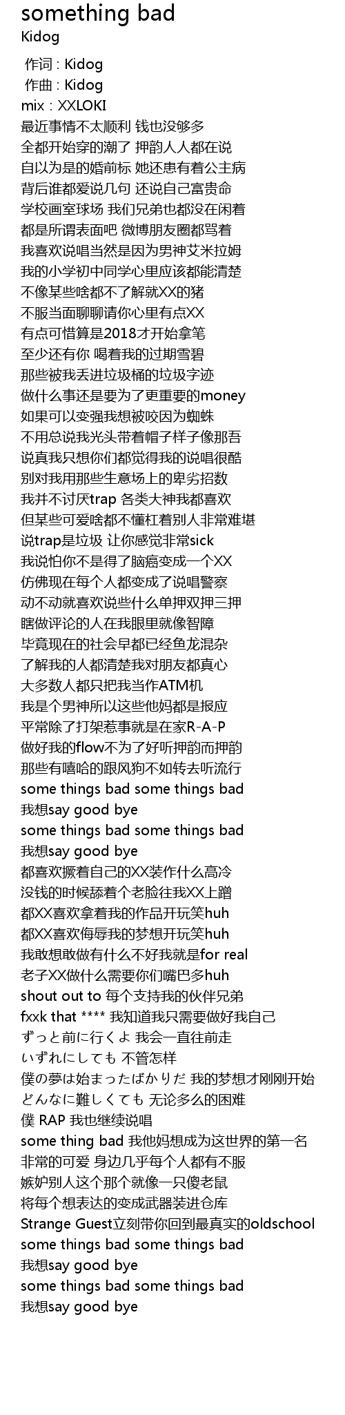 | [02:30.180] | some thing bad 我他妈想成为这世界的第一名 |
