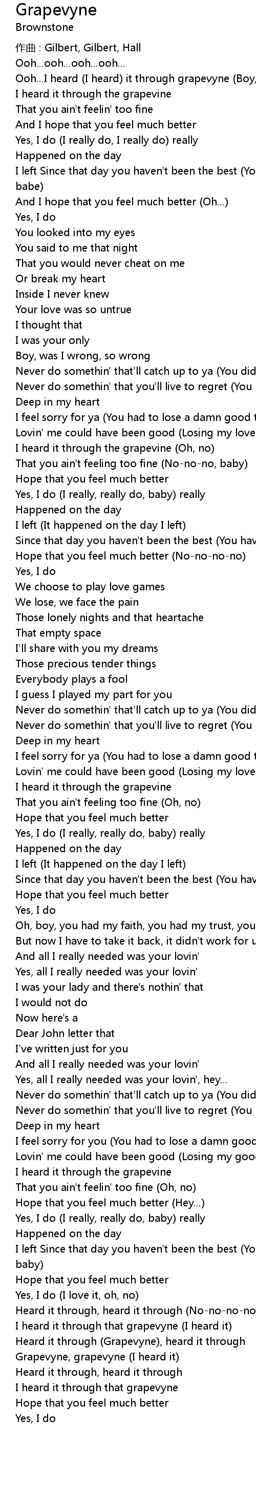 | Ooh...I heard (I heard) it through grapevyne (Boy, you know that I) | |