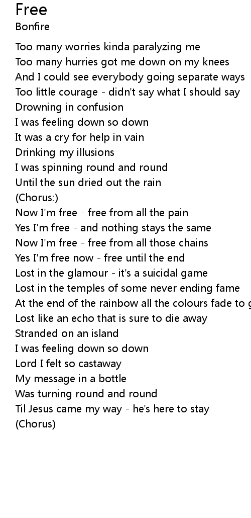Now I'm free - free from all the pain |