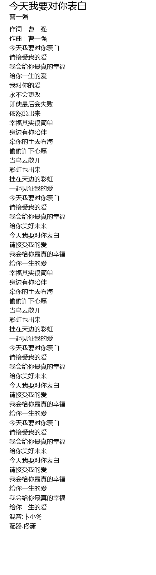| [00:15.04] | jin tian wo yao dui ni biao bai |