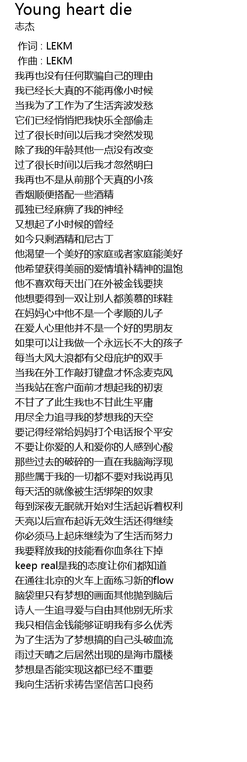 | [01:59.687] | wèi le shēng huó wèi le mèng xiǎng gǎo de zì jǐ tóu pò xuè liú |