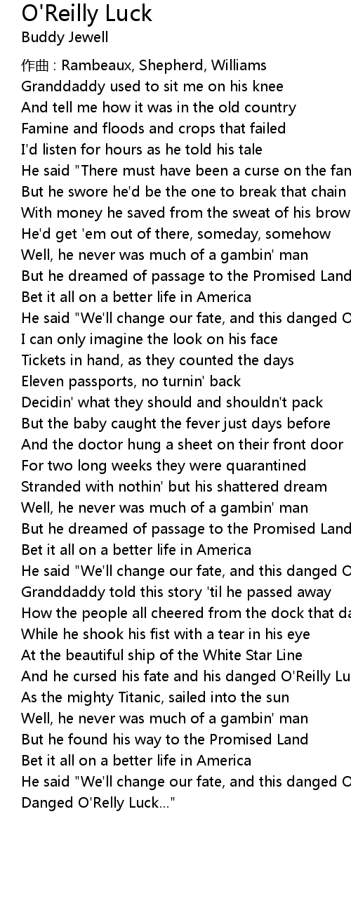 | And he cursed his fate and his danged O' Reilly Luck | |