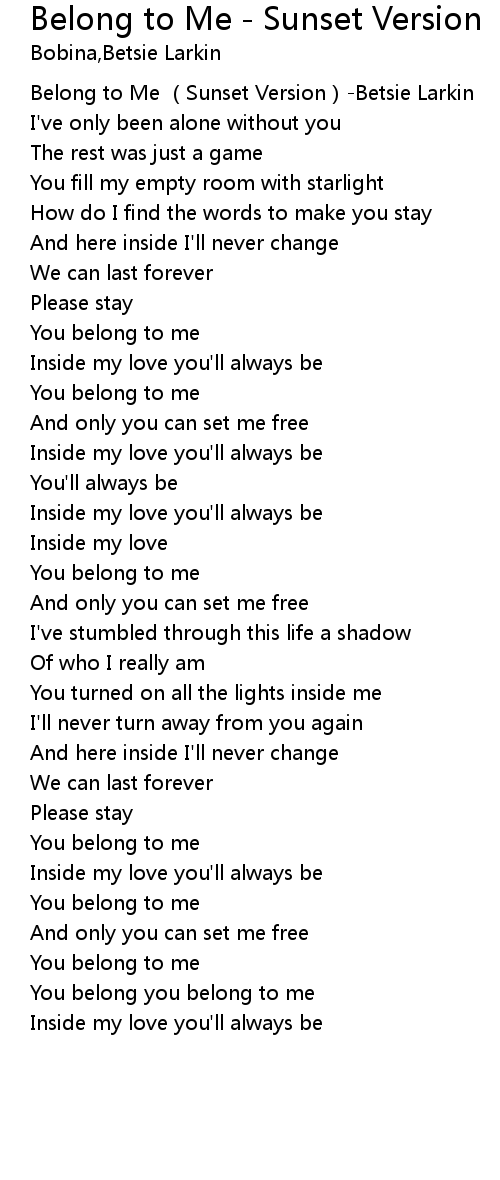 | [00:00.840] | Belong to Me Sunset Version Betsie Larkin |