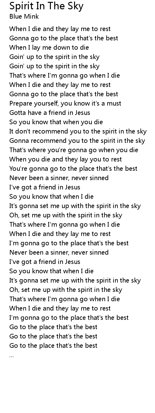 Gonna recommend you to the spirit in the sky |