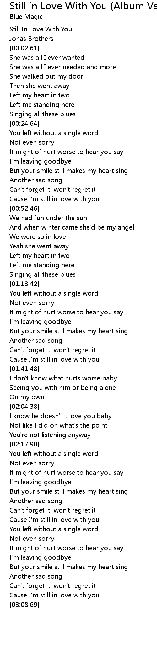 | [00:50.21] | Cause I' m still in love with you |
