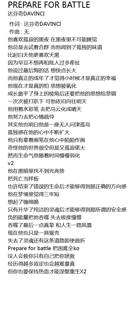 | [00:00.000] | 作词 : 达芬奇DAVINCI |