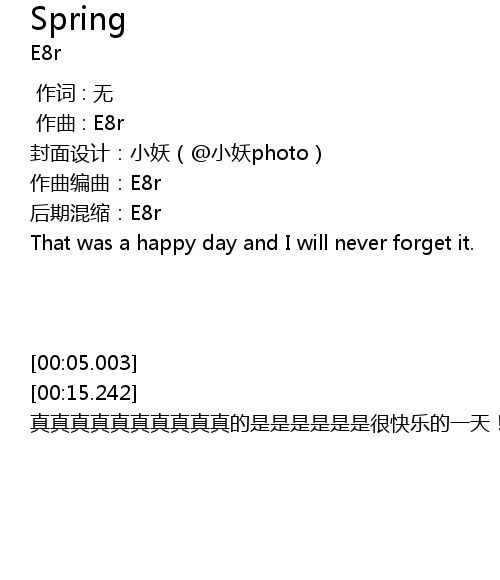 | [00:08.244] | 作曲编曲:E8r |