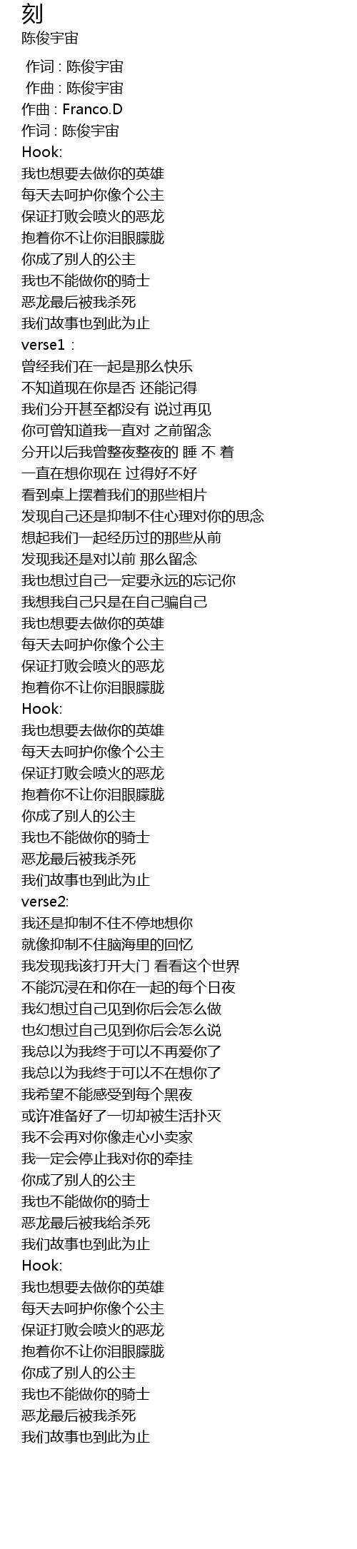 | [00:00.000] | 作词 : 陈俊宇宙 |