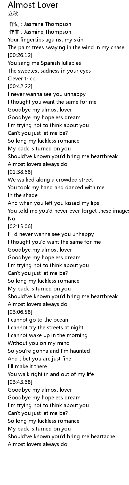 | [00:00.000] | zuò cí : Jasmine Thompson |