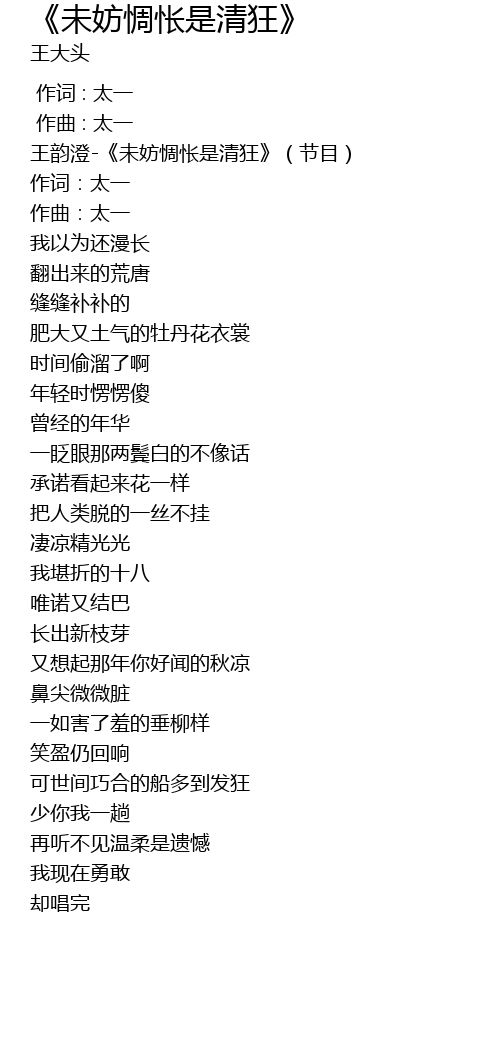 | [00:00.00] | 王韵澄-《未妨惆怅是清狂》(节目) |