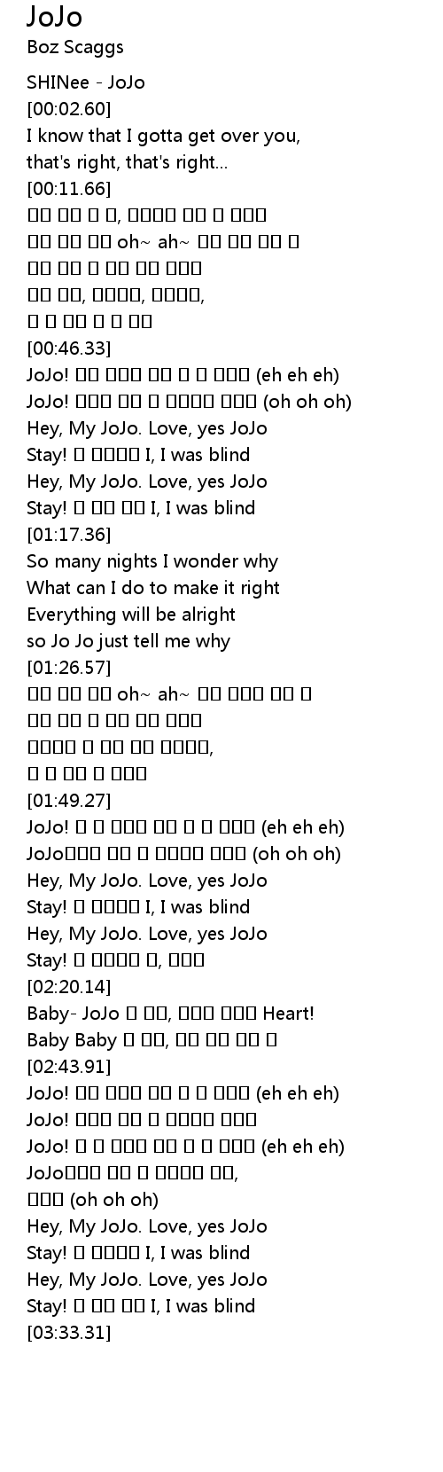 | [01:02.04] | Hey, My JoJo. Love, yes JoJo |