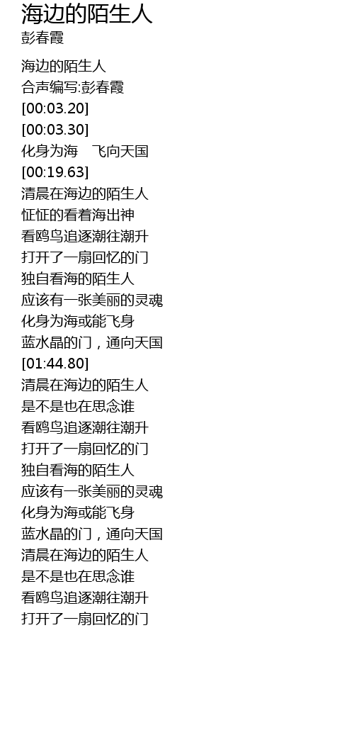| [01:44.98] | 清晨在海边的陌生人 |