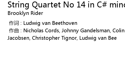 | [00:00.000] | zuo qu : Nicholas Cords, Johnny Gandelsman, Colin Jacobsen, Eric Jacobsen, Christopher Tignor, Ludwig van Bee |