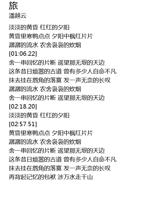 | [03:01.48] | huáng hūn lǐ hán yā diǎn diǎn xī yáng zhōng fēng hóng piàn piàn |