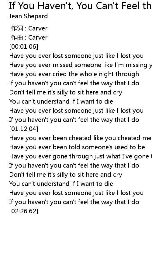 | [00:56.30] | Have you ever lost someone just like I lost you |