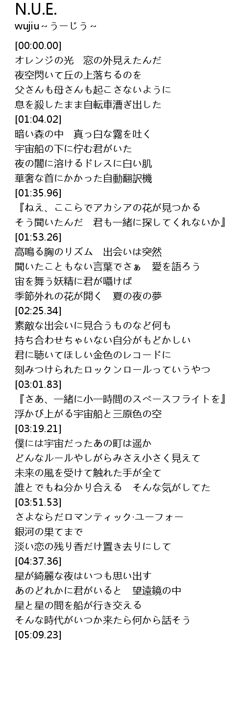 | [04:21.36] | さよならだロマンティック·ユーフォー |
