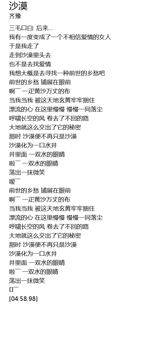 | [04:05.60] | 那时 沙漠便不再只是沙漠 |
