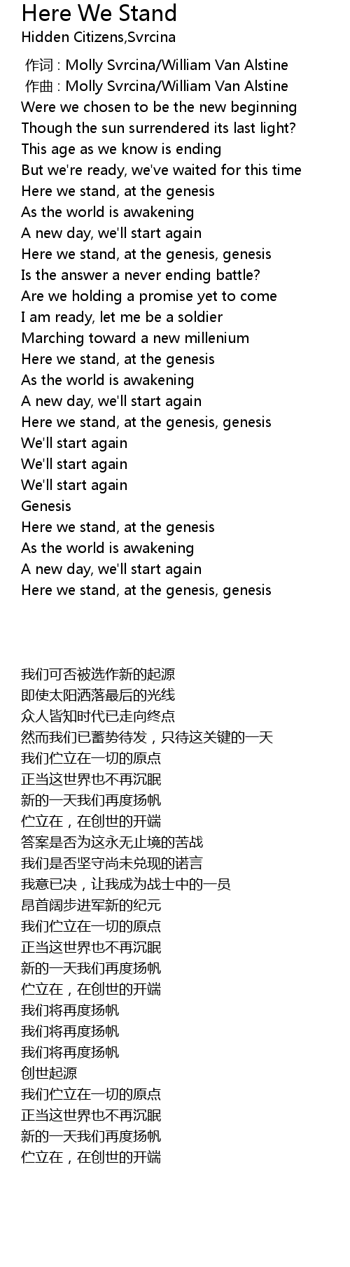 | [01:16.489] | Here we stand, at the genesis, genesis |