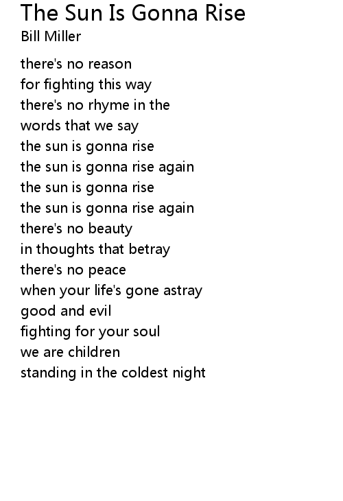 | the sun is gonna rise | |