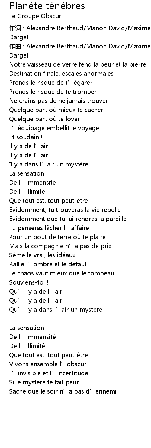 | Song | Planète ténèbres |
