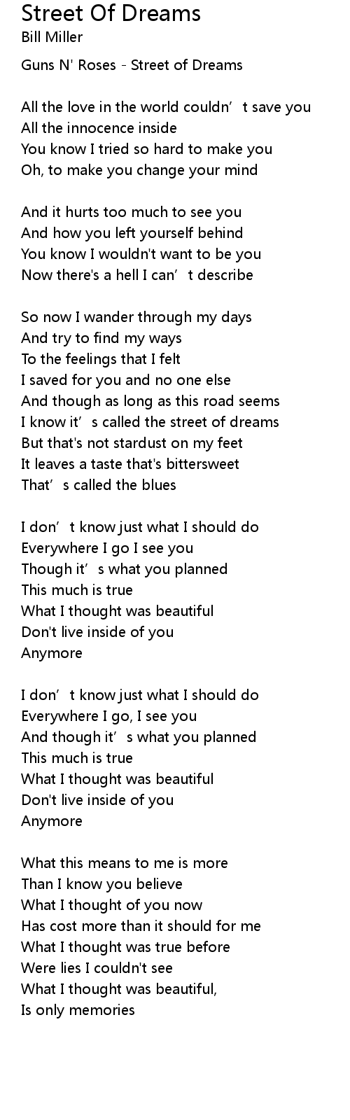| I know it' s called the street of dreams | |