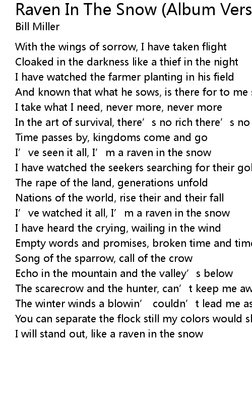 | [01:28.53] | I' ve watched it all, I' m a raven in the snow |