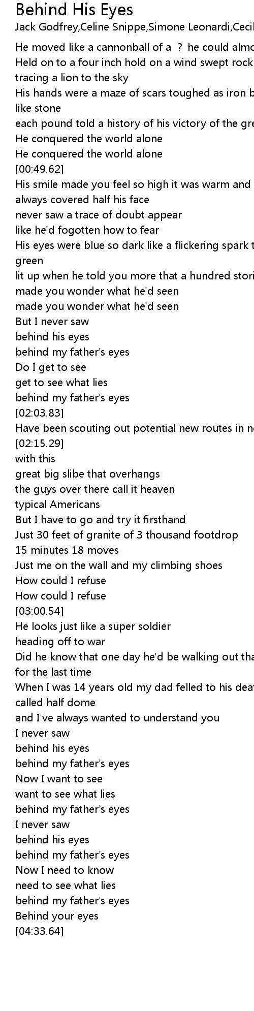 | [03:32.09] | When I was 14 years old my dad felled to his death climbing a mountain called half dome |