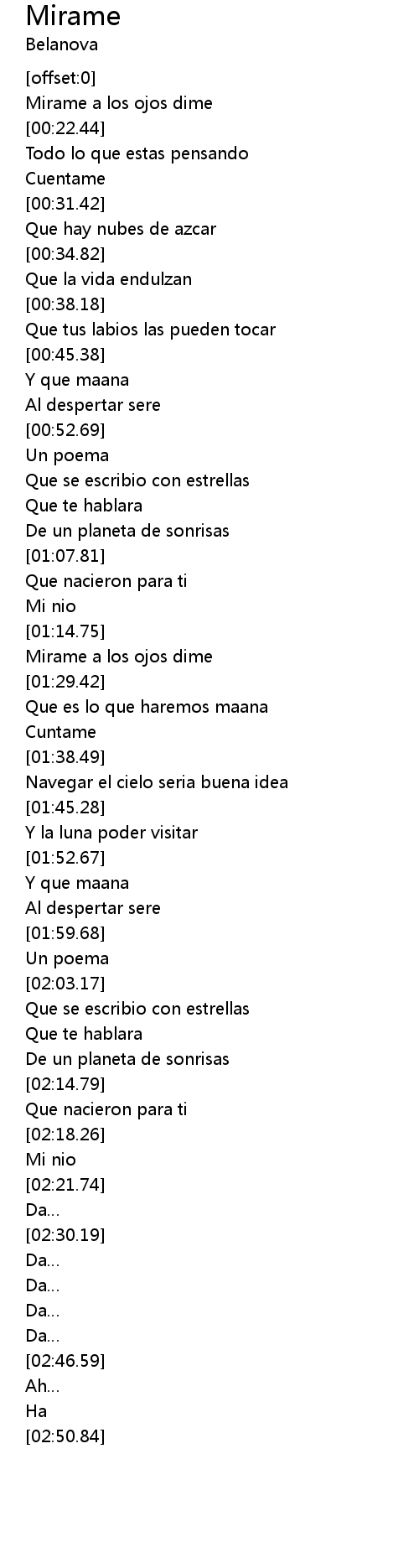 | [00:18.36] | Mirame a los ojos dime |
