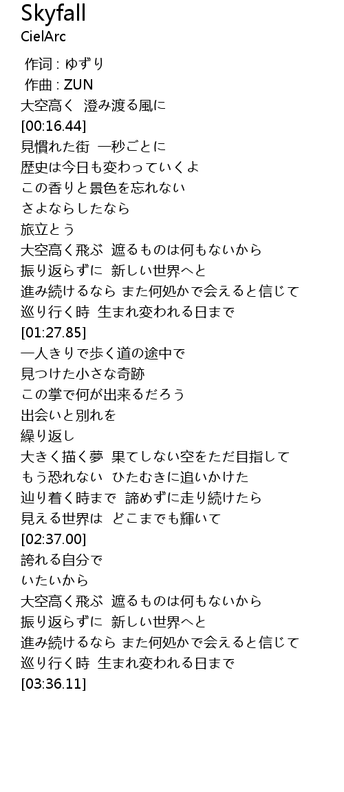 | [03:11.68] | 振り返らずに 新しい世界へと |