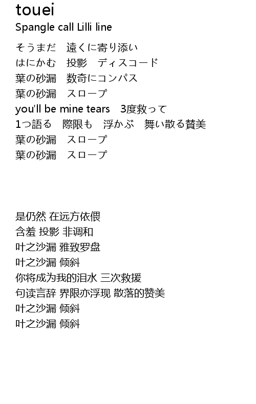 | [00:48.85] | 1つ語る 際限も 浮かぶ 舞い散る賛美 |