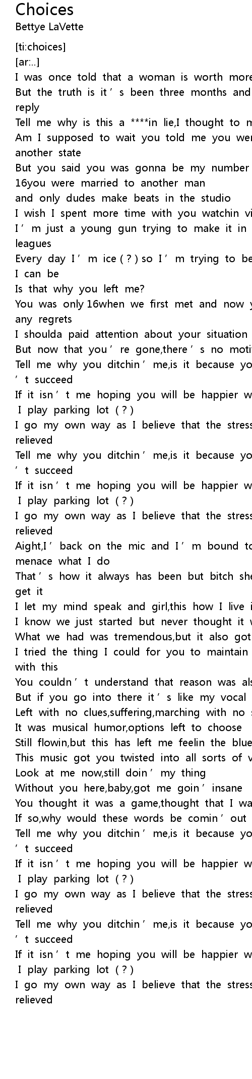 | [01:16.387] | Tell me why you ditchin ' me, is it because you think I can ' t succeed |