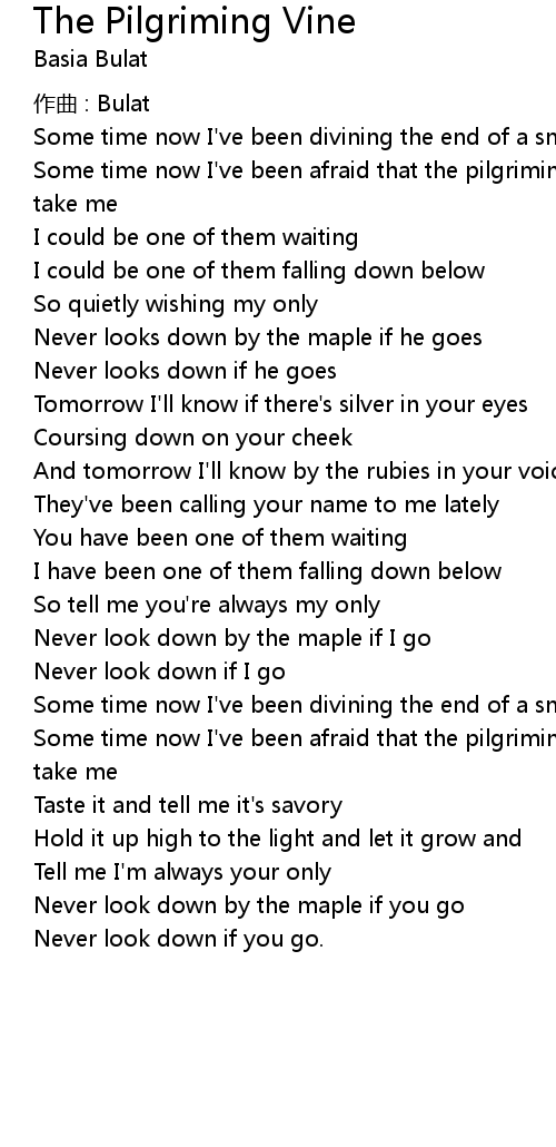 | Some time now I' ve been afraid that the pilgriming vine is finally coming to take me | |