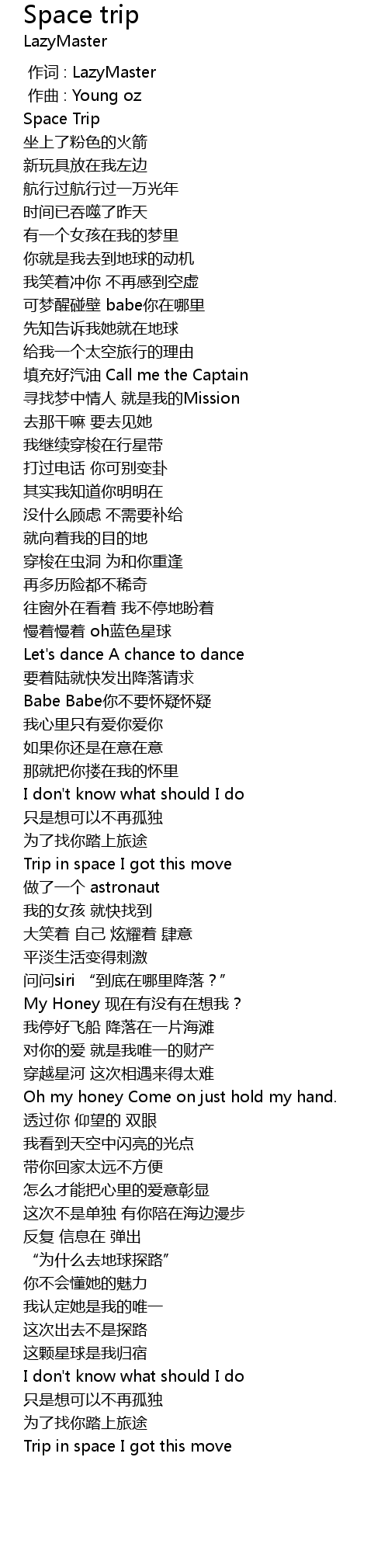 | [00:30.965] | gěi wǒ yí gè tài kōng lǚ xíng de lǐ yóu |