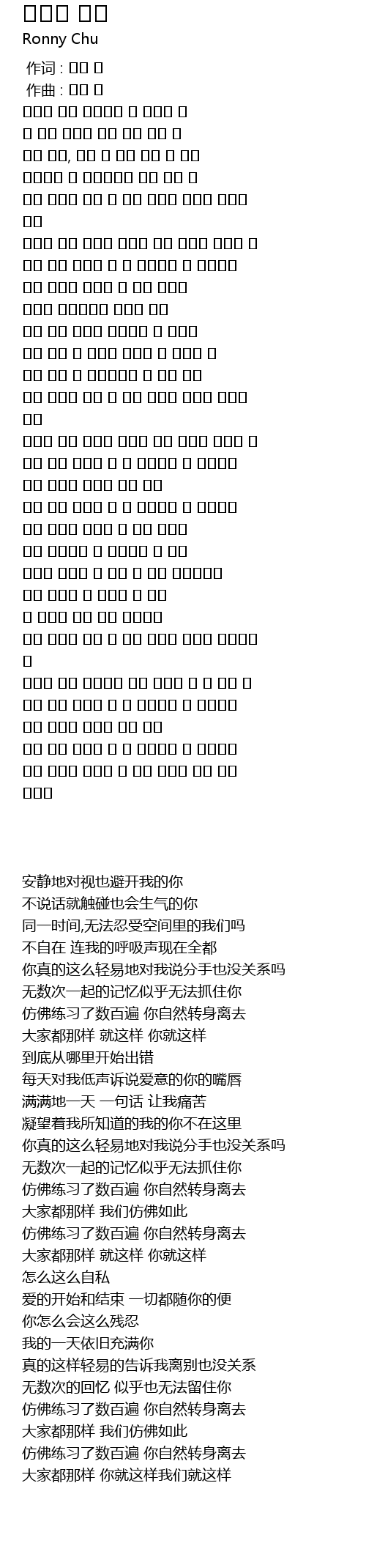 作词 : 로니 추 |