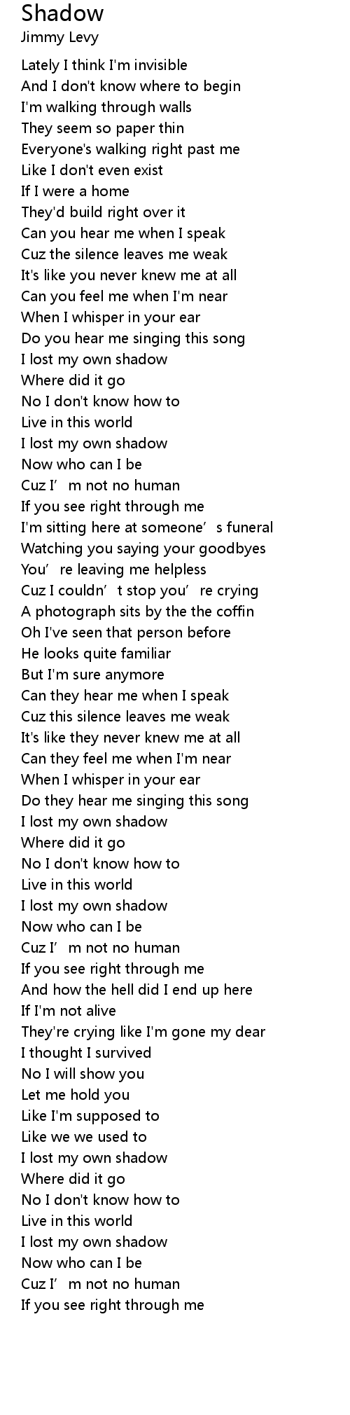 | [01:21.105] | I lost my own shadow |