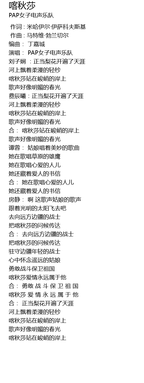 | [01:40.701] | 合: 喀秋莎站在峻峭的岸上 |
