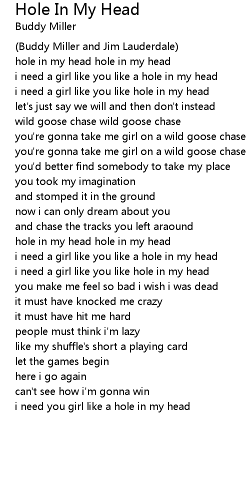 i need a girl like you like hole in my head |