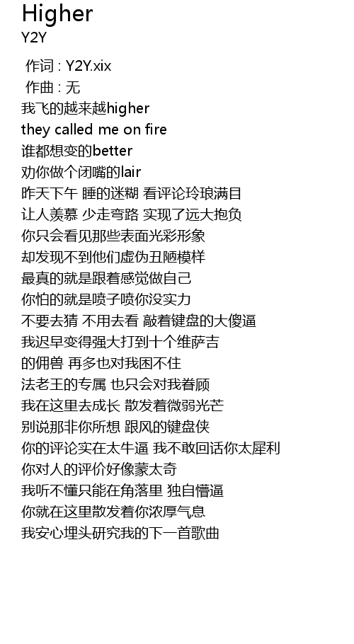| [00:00.000] | 作词 : Y2Y.xix |