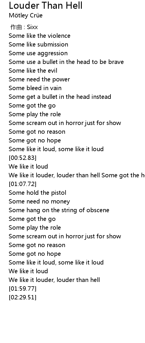 | [00:57.37] | We like it louder, louder than hell Some got the honey |