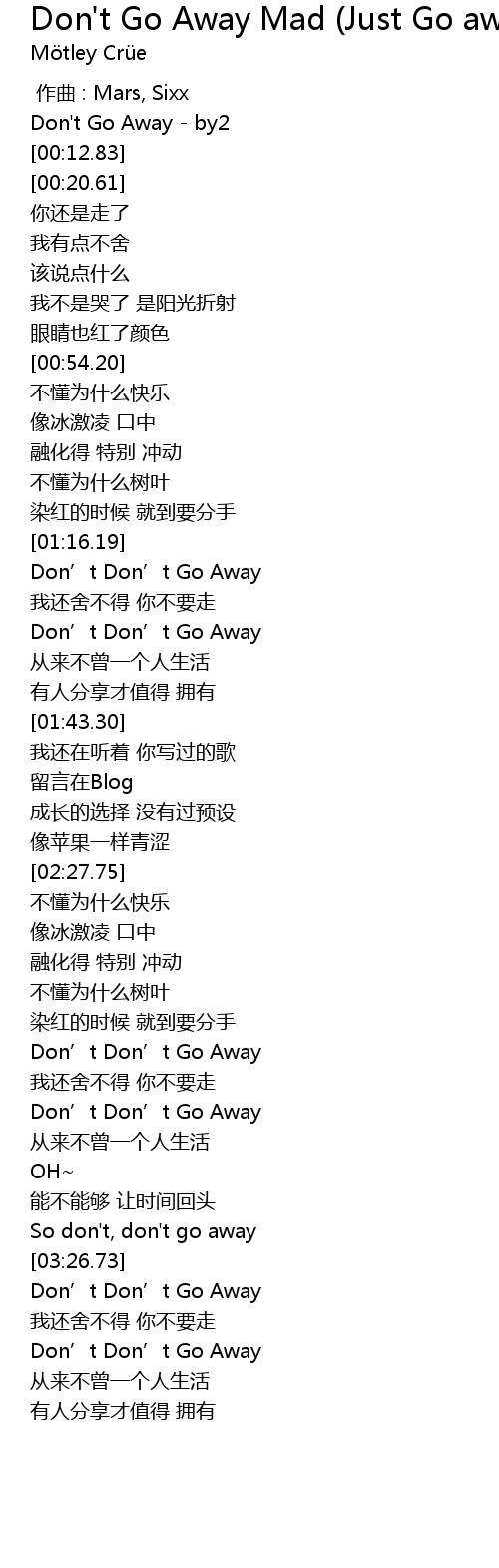 | [03:01.20] | Don' t Don' t Go Away |