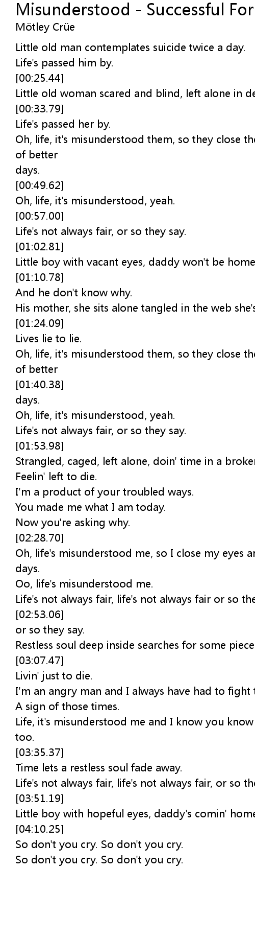 Life, it's misunderstood me and I know you know that you've been there too. |
