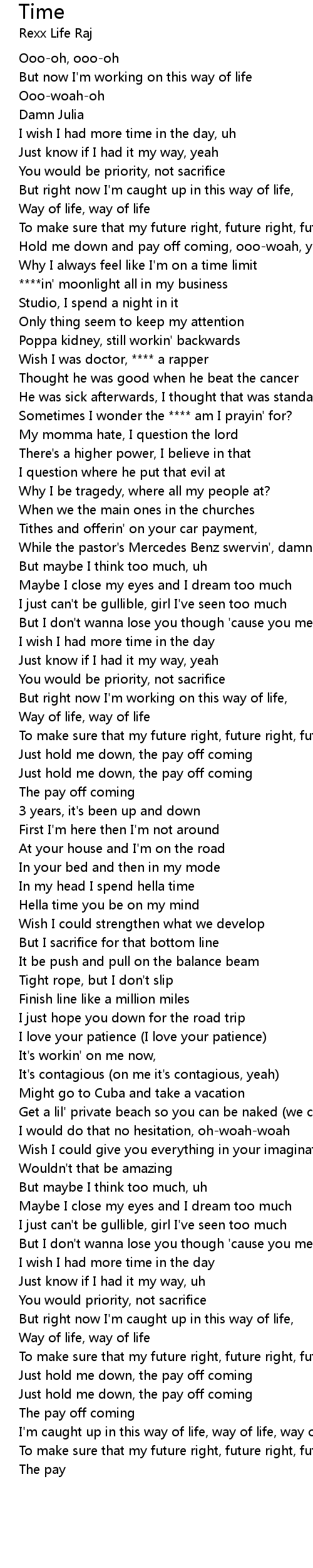 [01:02.81] Sometimes I wonder the **** am I prayin' for?