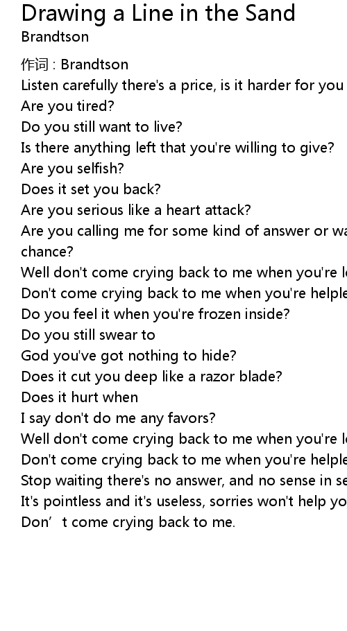 | Well don' t come crying back to me when you' re lonely and all out of love, | |