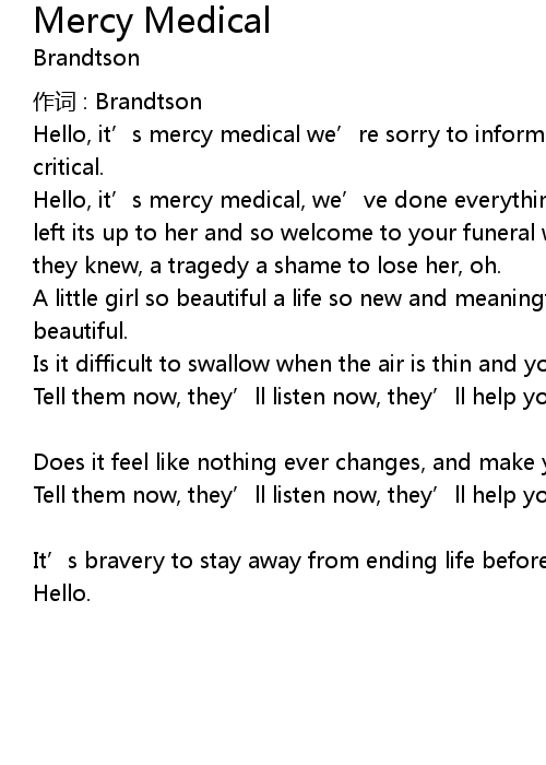 | Hello, it’s mercy medical we’re sorry to inform you of this situation critical. | |